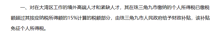 1、享受个税优惠。在大湾区工作的香港居民(含取得香港入境计划(优才、专业人士及企业家)),个税可超过香港标准部分可以申请返还。在内地的收入也能享受香港的税收优势。优惠政策覆盖范围后期还将扩大。而香港15%的标准税率远低于内地最高45%的个税税率。对于高收入人士,这项优惠将为他们节省每年数万元的个税支出,而且也扩大了他们的就业范围。至少现在在大湾区,个税部分与他们在香港工作时是一致的。