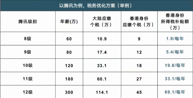 香港的薪俸税(个人所得税),相比于内地来说,具有税前抵扣项目多和税率低的优点,最后还有税款宽减的政策(最近2个财政年度的宽减额为1万元税款),对于内地的高收入金领阶层来说,年收入超百万,两地的个税能相差近20万。